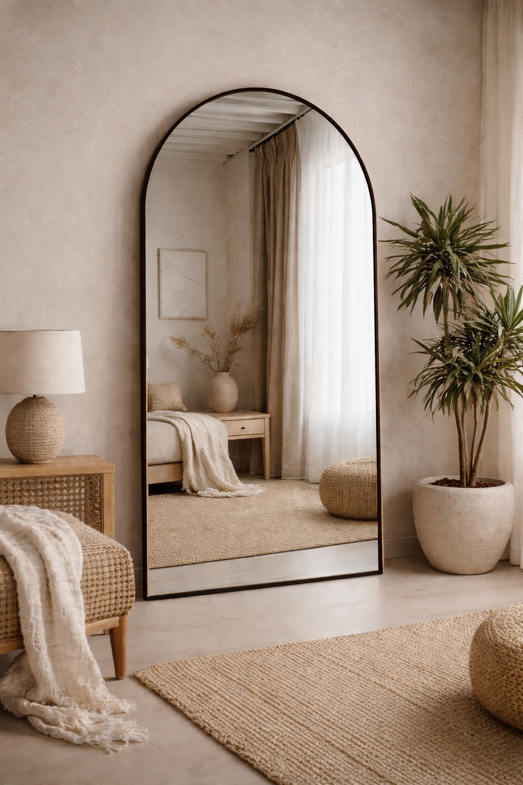 Boogspiegel in Japandi stijl